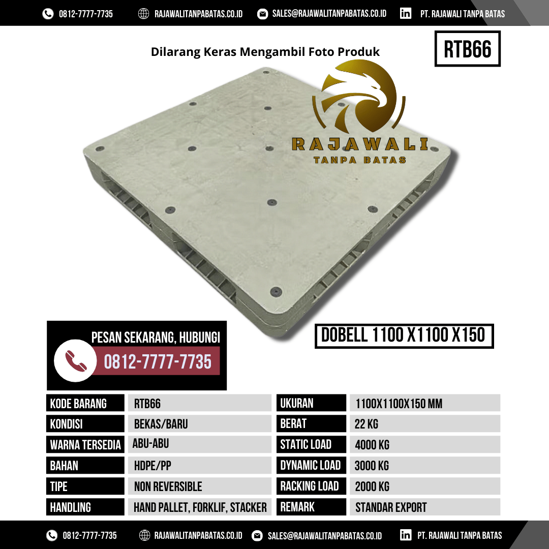Dalam dunia logistik dan pergudangan, pemilihan pallet yang tepat menjadi salah satu faktor penting untuk memastikan efisiensi, keamanan, dan kelancaran pengiriman barang. Menyadari kebutuhan tersebut, PT Rajawali Tanpa Batas menghadirkan Pallet Plastik Bekas & Baru RTB66 – Abu-Abu, produk unggulan yang dirancang untuk memenuhi standar tinggi industri modern. Pallet ini cocok digunakan di berbagai sektor, mulai dari manufaktur, distribusi, retail, hingga industri makanan dan minuman.